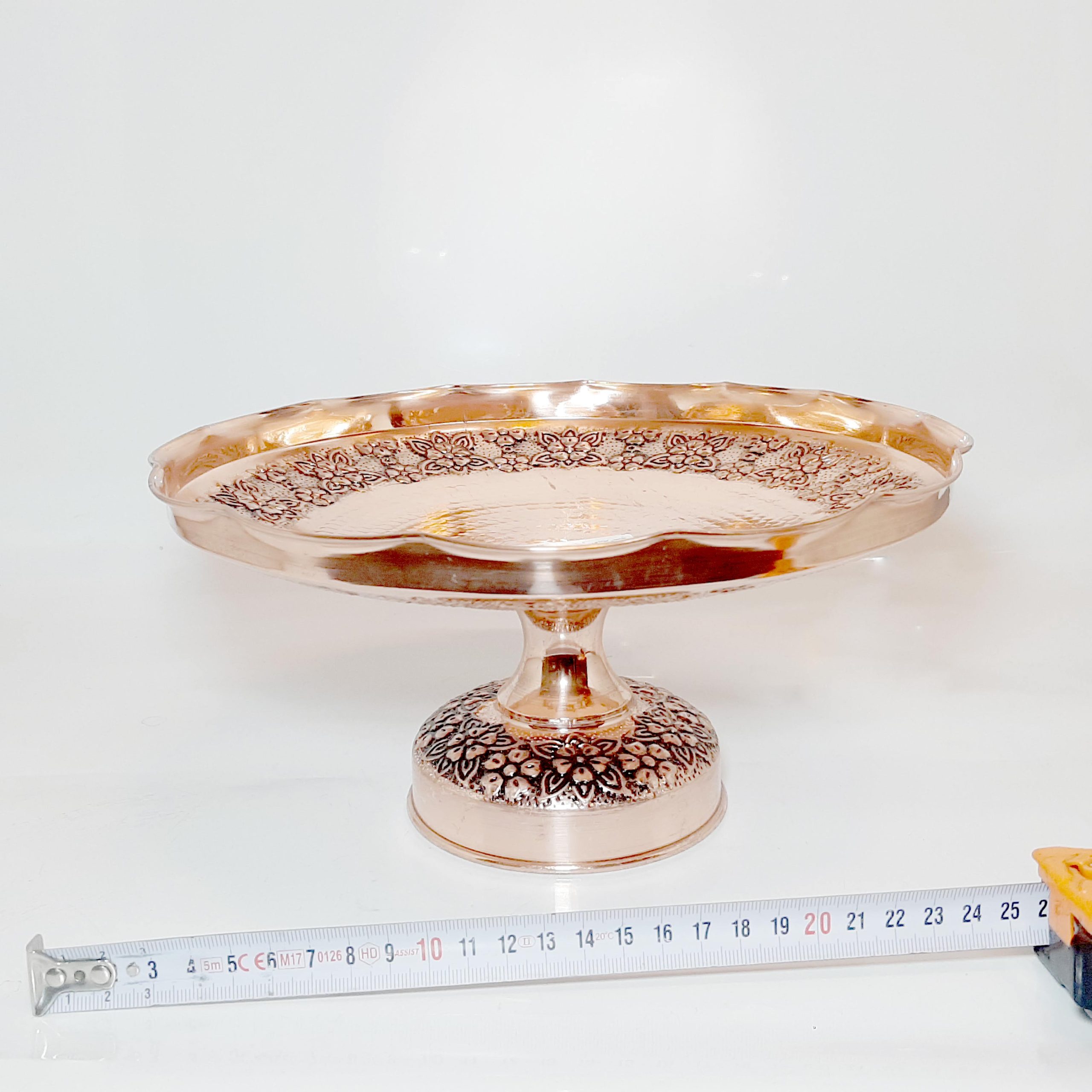 سرو شیرینیها و دسرها: شیرینیخوری پایهدار مسی به طور خاص برای سرو انواع شیرینیها، میوهها و دسرها طراحی شده است. این ظرف میتواند به عنوان یکی از اصلیترین وسایل پذیرایی در مهمانیها و جشنها استفاده شود.