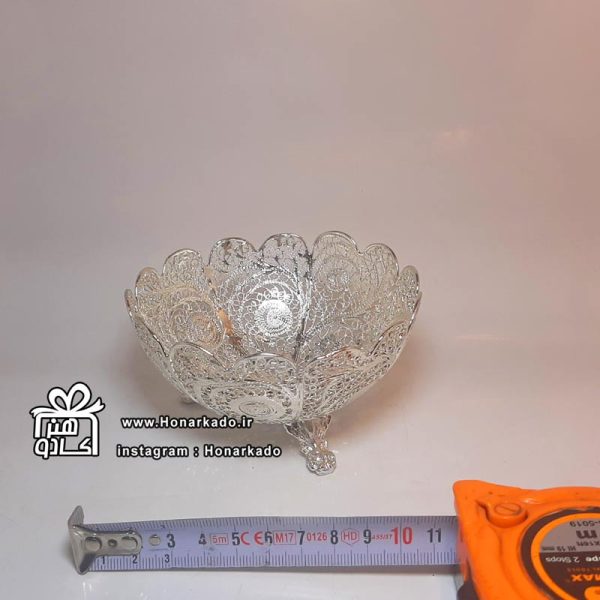 کاسه آجیل سه پایه ملیله نقره 11سانت-6عدد